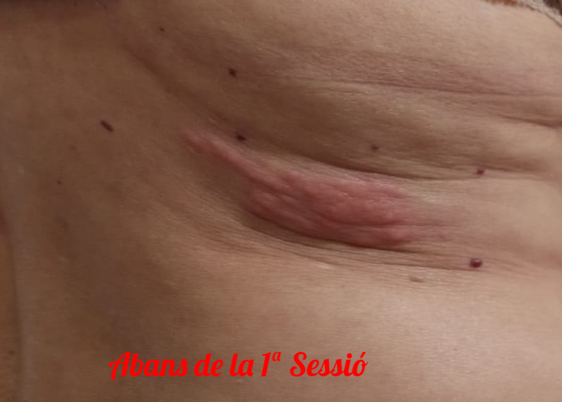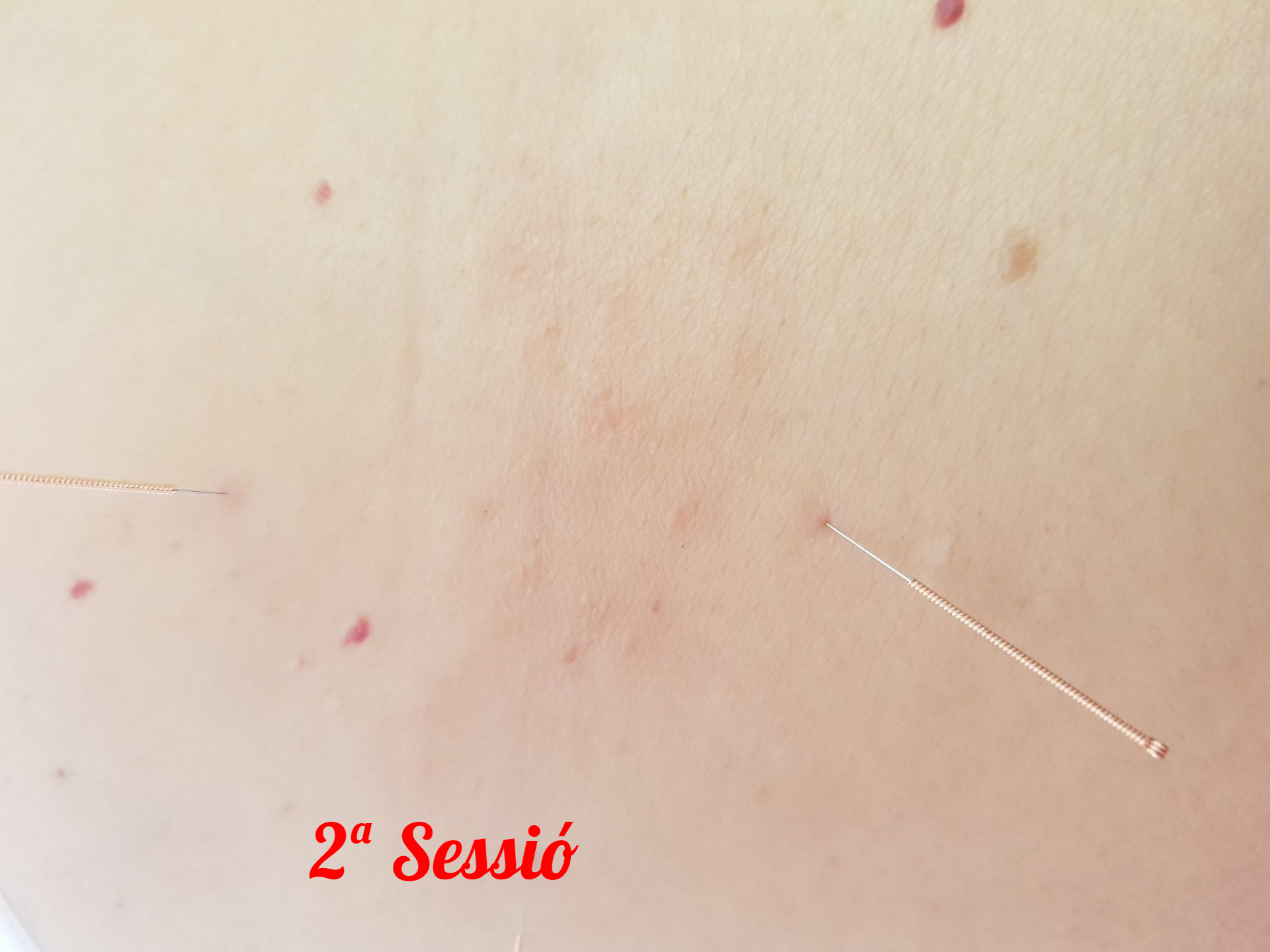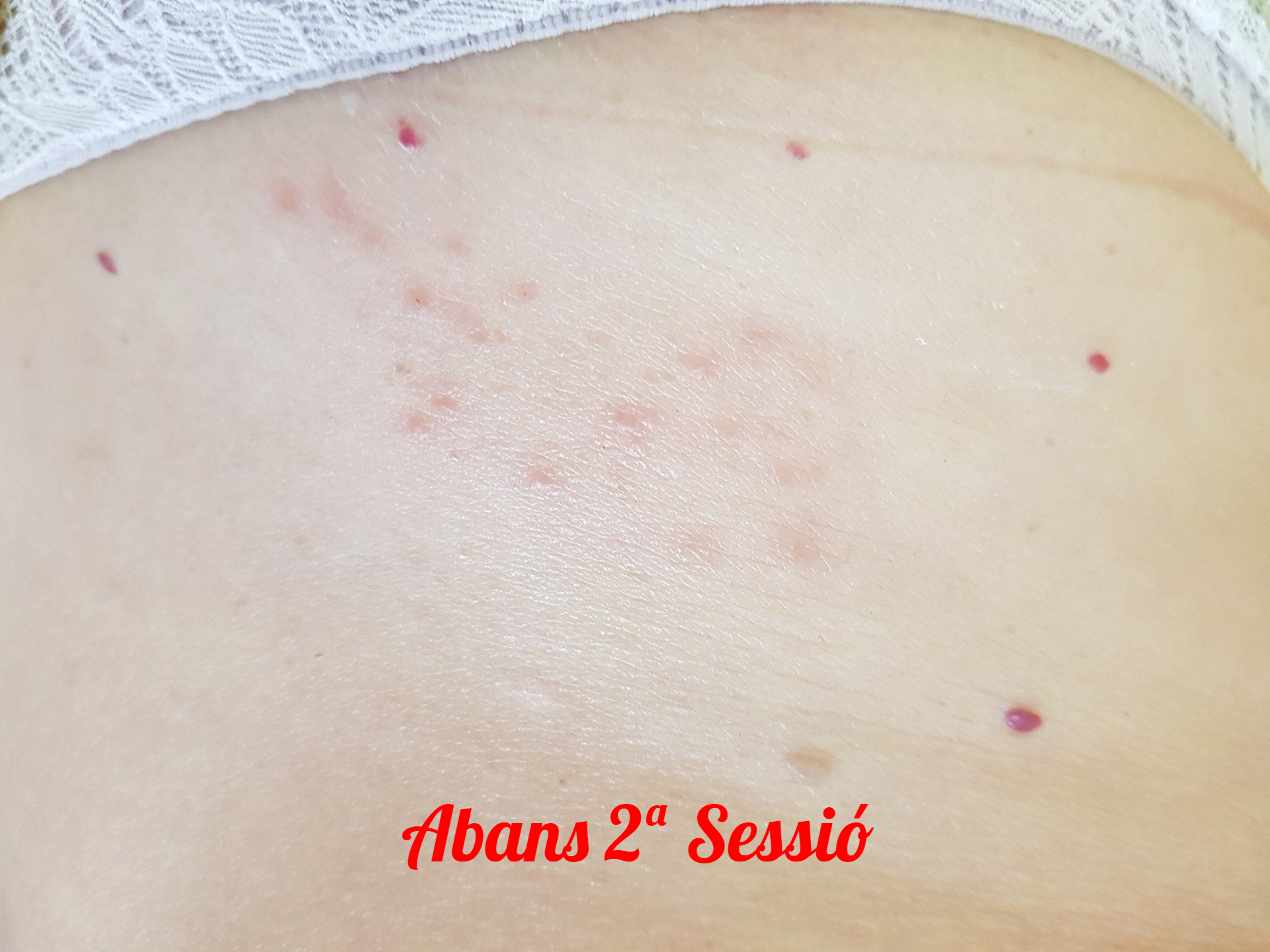 Pacient amb el començament d'Herpes Zoster, febre, vòmits... Imatges d'abans de començar i després de cada sessió.